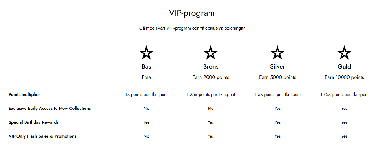 Du får poäng för varje krona du spenderar hos oss, och dessa kan sedan lösas in mot belöningar såsom rabatter eller produkter.